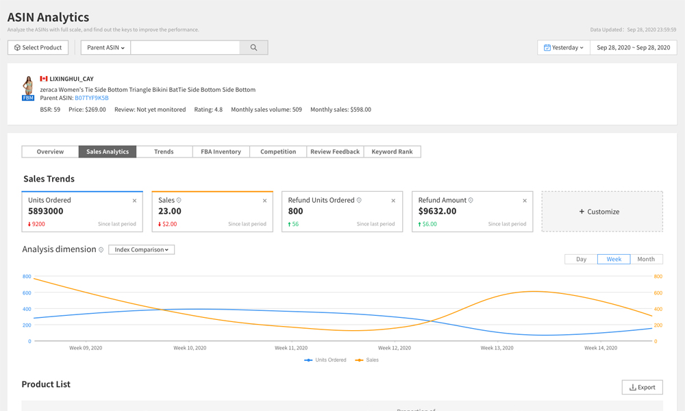 This tool will assist you with analyzing the specific ASINs by multiple metrics, such as traffic, sales, inventory and other performance.