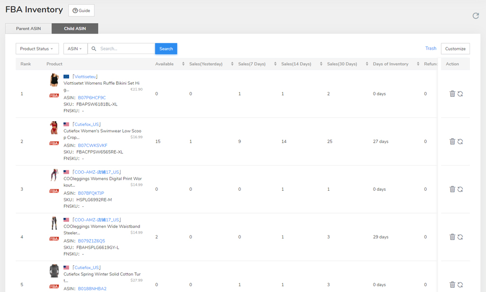 With FBA Inventory tool, you can analyze more inventory data, such as cost, sales, average sales, and refunds.